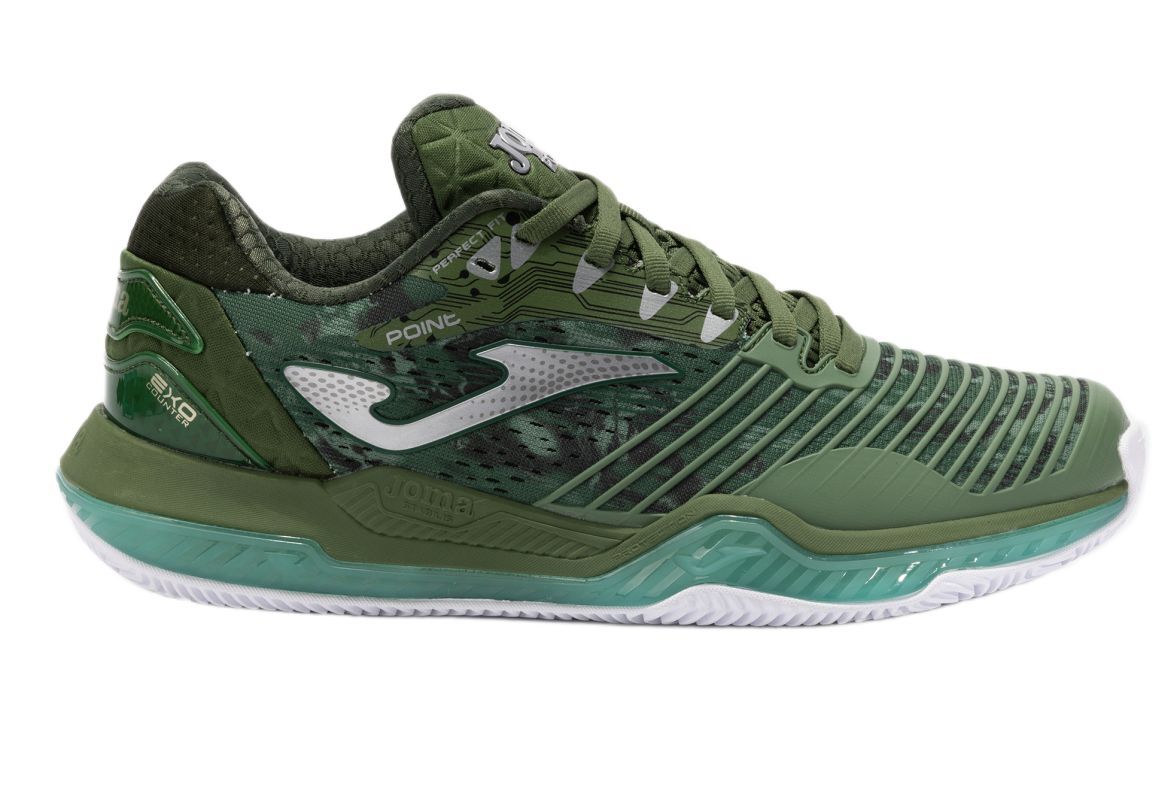 Мужские теннисные кроссовки Joma T.Point Men 2523 Clay - khaki. Модель предназначена для требовательных игроков, ищущих обувь с очень хорошей амортизацией и стабилизацией. Прочный верх со специально расположенными вентиляционными зонами, элегантным и современным внешним видом, сочетает в себе адекватную поддержку стопы с хорошей воздухопроницаемостью. Язычок частично выполнен из сетчатой панели. Усиление ExoCounter обеспечит хорошую защиту пятки. Промежуточная подошва из пены и технология Stabilis отвечают за стабильность и сцепление. Отлично поддерживает поддержание правильного баланса. Большое внимание уделяется защите от травм благодаря усилениям в критических местах. Обувь, благодаря профилю протектора, предназначена для игры на грунтовых кортах. Применены технологии: PerfectFit, Protection, Sportech, RubberTech, Flexo.