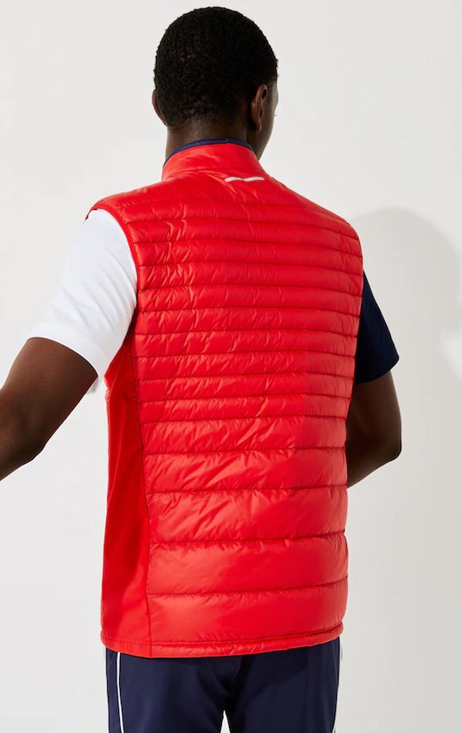 Мужской легкий водостойкий стеганый жилет Lacoste SPORT — красный/темно-синий/белый