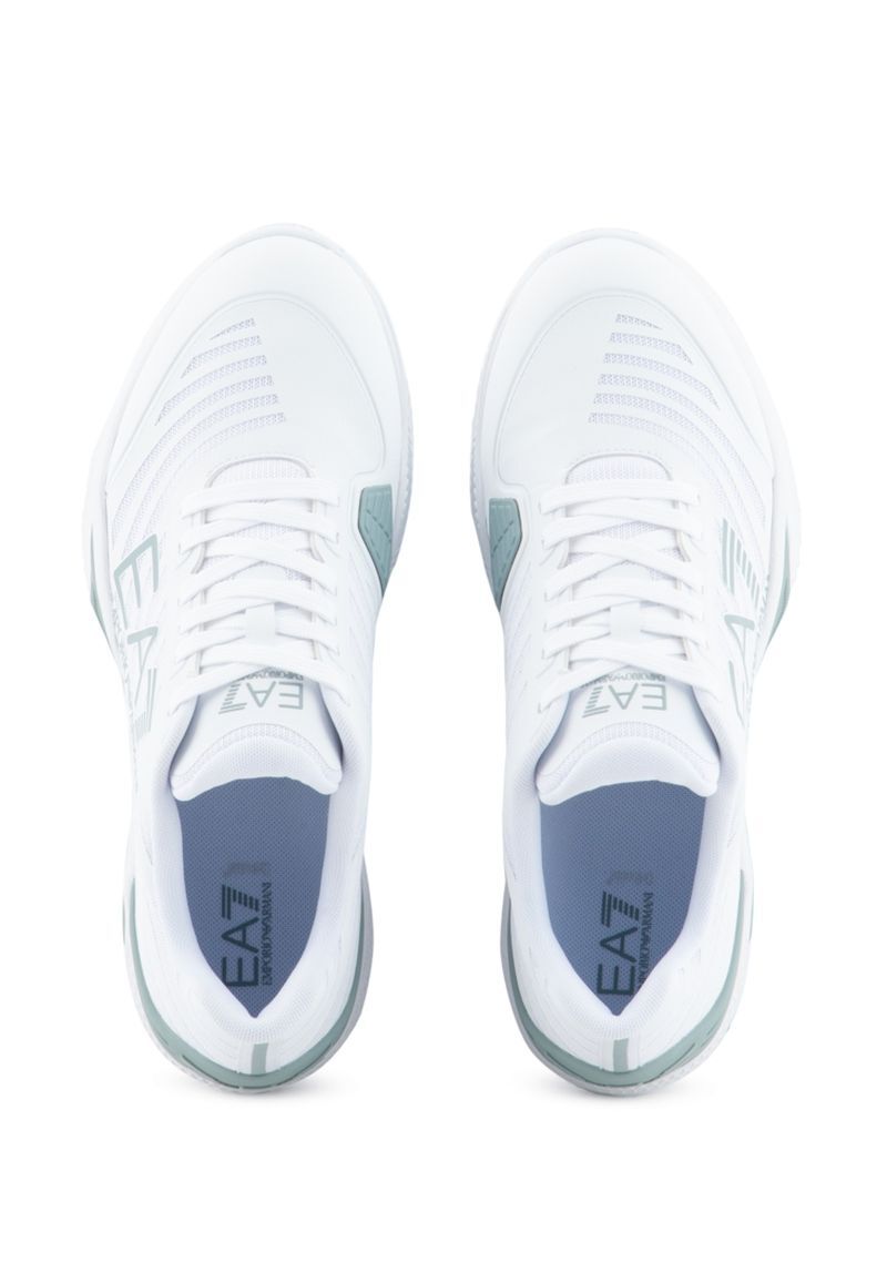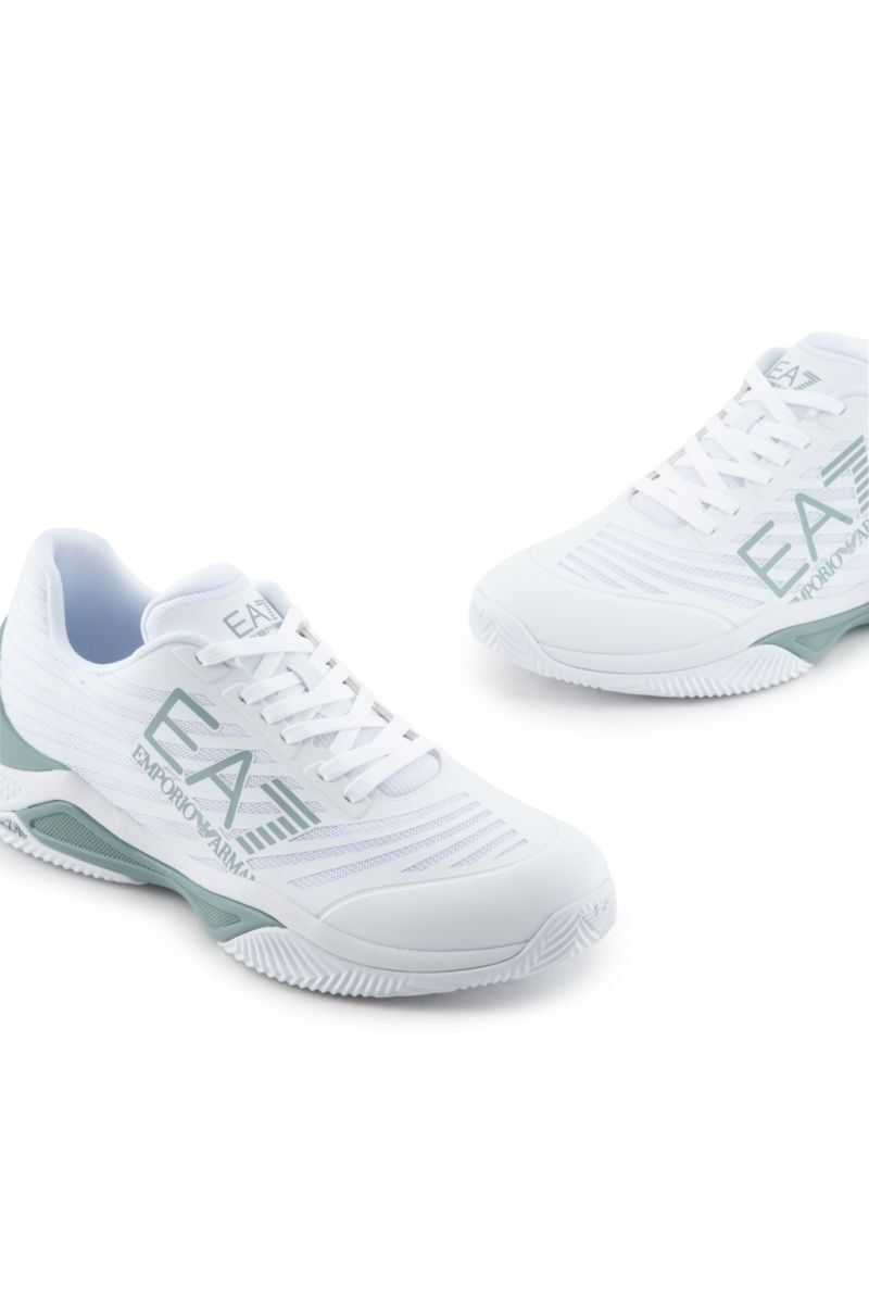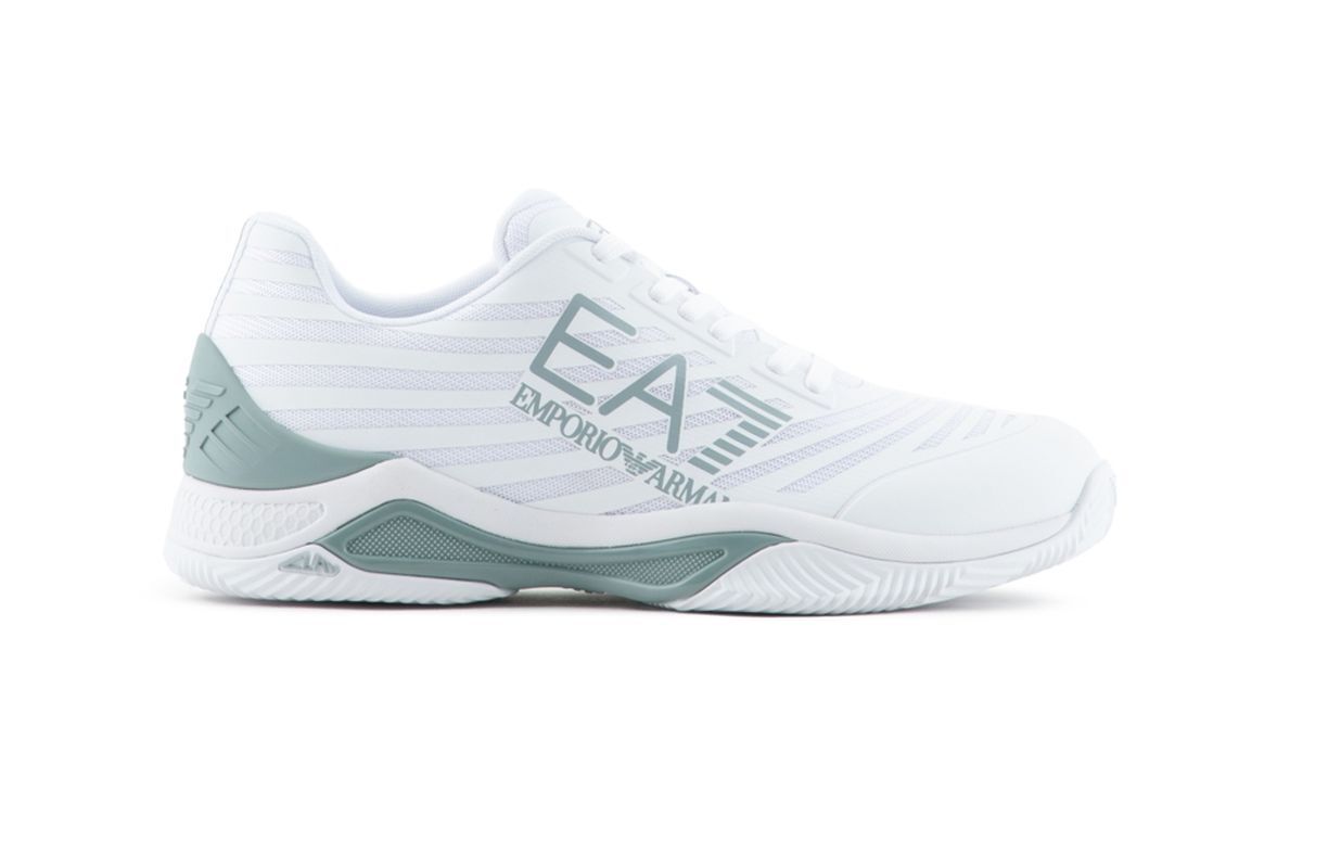 Теннисные кроссовки EA7 Unisex Woven Sneaker Clay - white/abyss. Необыкновенно стабильная обувь с элегантным внешним видом, который является результатом проекта итальянского дома моды EA7 Emporio Armani. Голенище имеет многочисленные зоны с панелями из сетчатого материала, которые обеспечивают хорошую вентиляцию. Самые уязвимые зоны, наиболее подверженные истиранию в области пятки и с внутренней стороны свода стопы, были дополнительно усилены, что увеличивает прочность. Конструкция с частично интегрированным языком позволяет более надежно удерживать ногу в обуви, обеспечивая дополнительную поддержку. Средняя подошва из мягкой пены гарантирует хорошую амортизацию. Логотип Emporio Armani с внешней стороны добавляет стиль. Модель с подошвой в классическую шиповку, предназначенная для игры на грунтовых кортах.