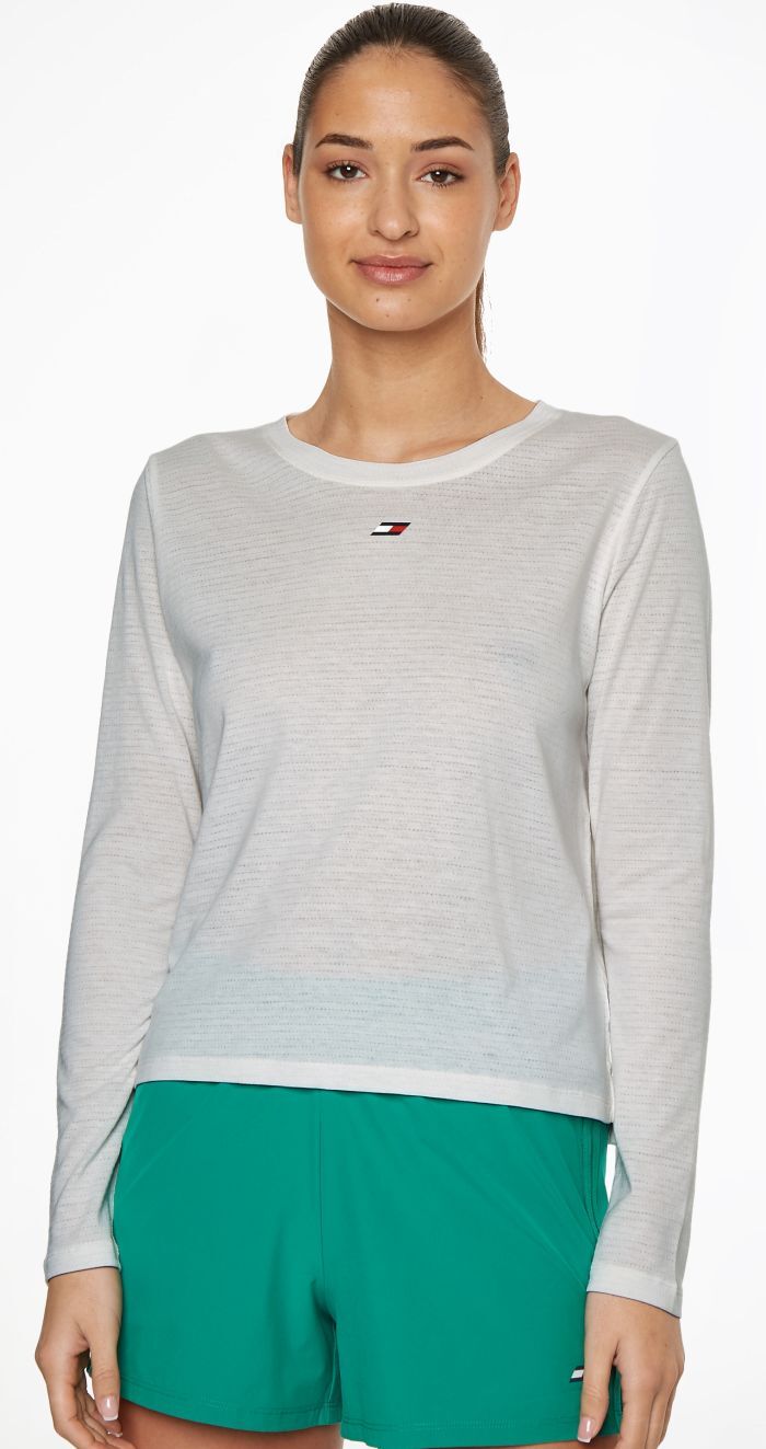 Женская теннисная футболка с длинными рукавами Tommy Hilfiger Сетчатая футболка с длинными рукавами - экрю