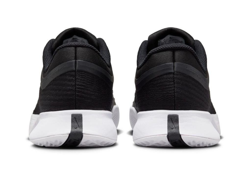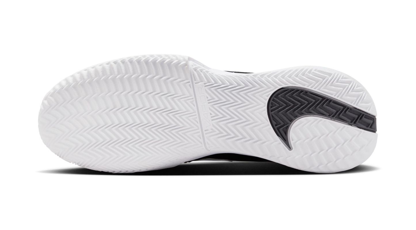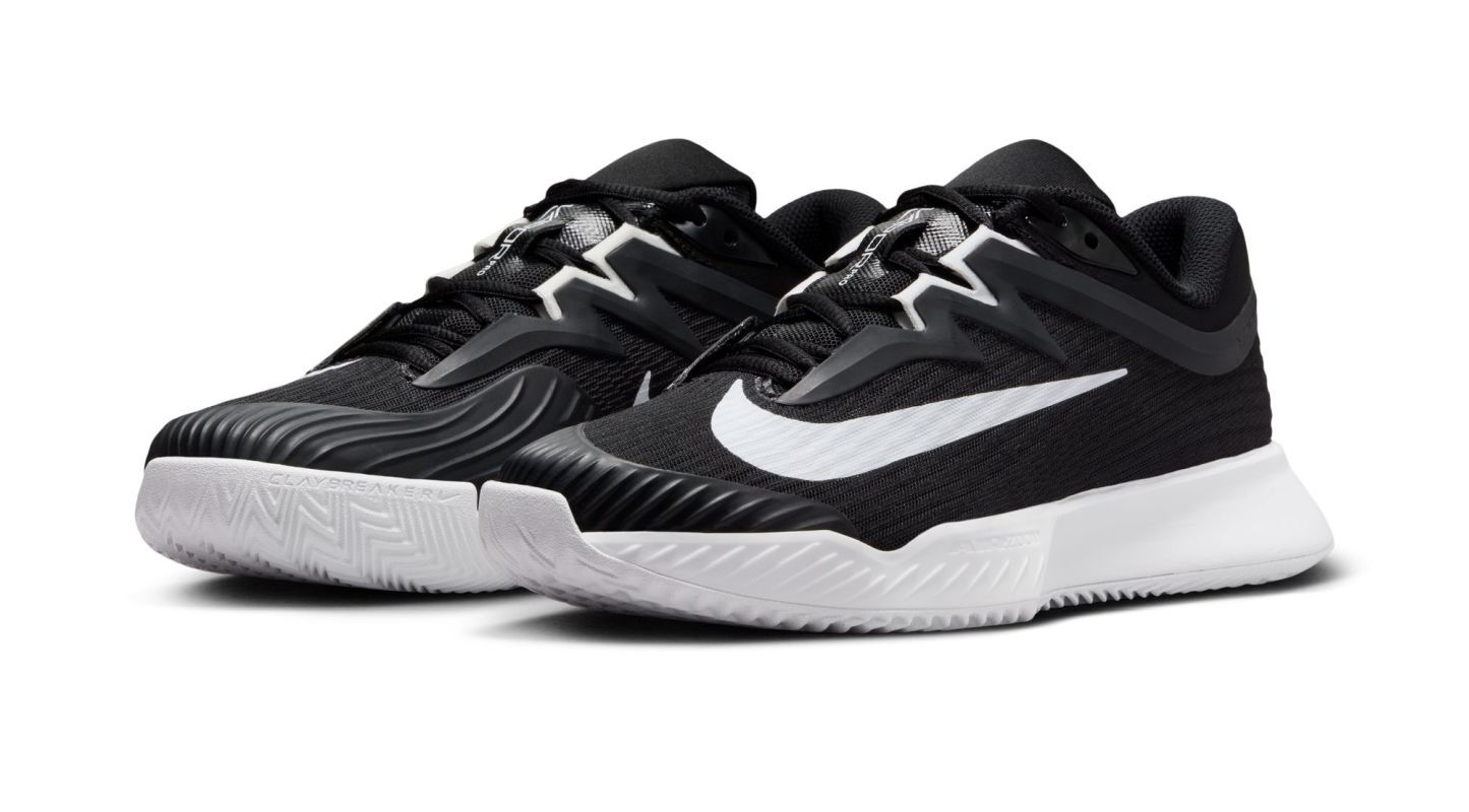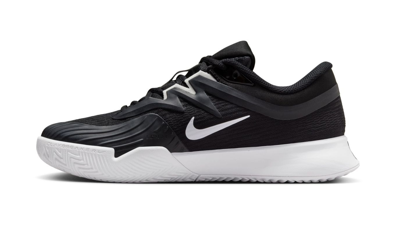 Женские теннисные кроссовки Nike Zoom Vapor Pro 3 Clay - black/white. Третья версия культовой модели Vapor Pro включает улучшения и инновации, разработанные инженерами Nike на основе предложений как профессиональных, так и любительских теннисистов. Сохранена высоко ценимая исключительная легкость обуви, позволяющая быстро перемещаться по корту, при этом улучшен уровень поддержки стопы при быстрых поворотах и комфорт при ношении в течение всего дня. Конструкция верха из прочной сетки гарантирует отличную воздухопроницаемость. Эластичная резиновая окантовка вокруг носка и наиболее подверженной истиранию боковой внутренней области увеличивает долговечность. Удаление резины из менее подверженных износу зон минимизирует вес обуви. Язычок с частично интегрированной внутренней носком структурой и полный ремешок в области средней части стопы, позволяющий сильнее затягивать шнурки, обеспечивают улучшенную посадку и еще более стабильно удерживают стопу при резких изменениях направления. Газовая подушка **ZOOM AIR**, расположенная в промежуточной подошве, обеспечивает очень хорошую амортизацию с отличной упругостью шага. Кроме того, уменьшение размера подушки улучшило гибкость и сцепление передней части обуви, что облегчает естественное сгибание при отталкивании и максимизирует динамику отскока. Специальный протектор подошвы **CLAYBREAKER**, разработанный с учетом карты давления и анализа областей, где скапливается больше всего глины, обеспечивает отличное сцепление на грунтовых кортах и ограничивает прилипание осадка.