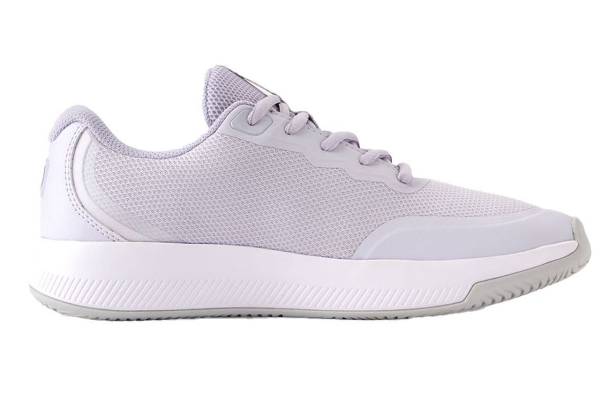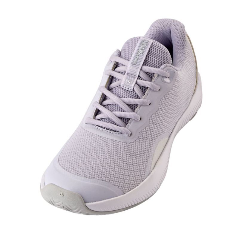 Женские теннисные кроссовки Wilson Intrigue Lite - lavender blue/white/lunar rock. Модель Intrigue Lite, разработанная с учетом биомеханики строения женской стопы, сочетает в себе легкость, скорость передвижения и высокий комфорт ношения с минималистичным, стильным дизайном. Верх из однослойной сетки обеспечивает деликатную поддержку и отличную воздухопроницаемость. Его специальная конструкция дополнительно поддерживает свод стопы и защищает пятку, а усиления в критических зонах обеспечивают соответствующую долговечность. Промежуточная подошва, заполненная пеной от пятки до носков, и более толстая, чем стандартная, стелька гарантируют очень хорошую амортизацию. Внешняя подошва из прочной резины Duralast имеет универсальный протектор с системой non-marking, который обеспечит сцепление на различных поверхностях.